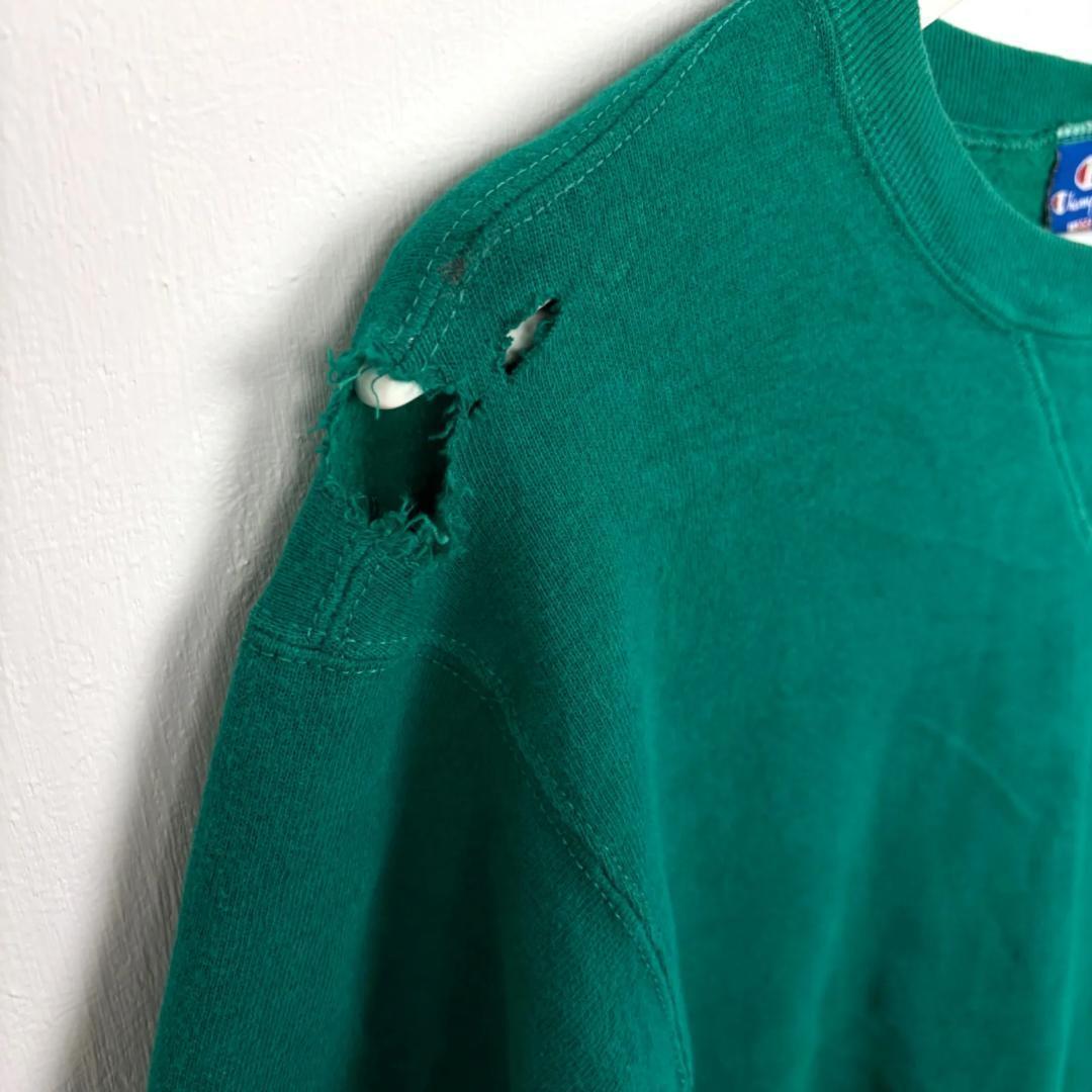 90s★アメリカ製 USA製 チャンピオン★ スウェット Lサイズ 緑 ストリート 古着 前Vガゼット グランジ